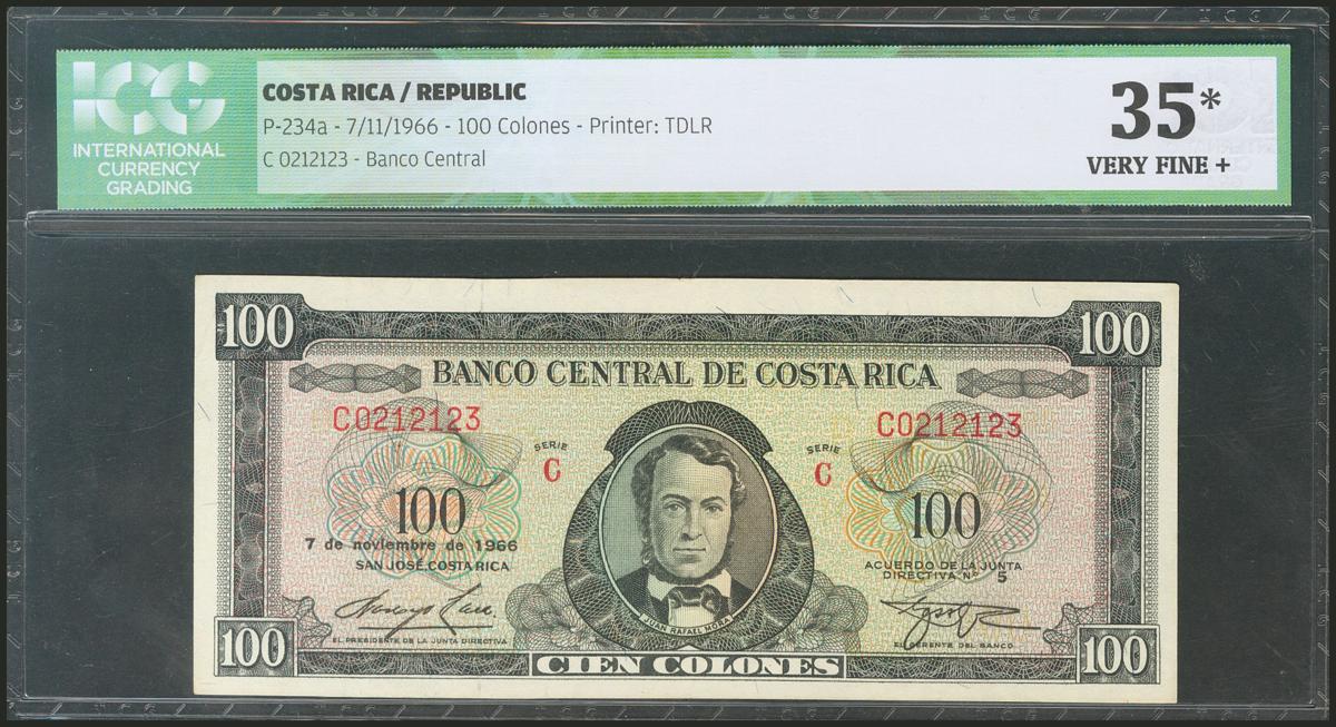 COSTA RICA. 100 Colones. 7 November 1966. (Pick: 234a). ICG35* (flatted).