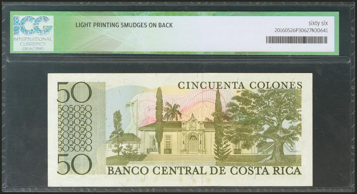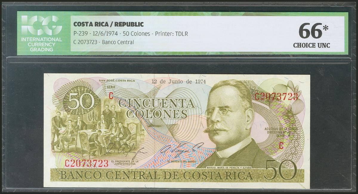 COSTA RICA. 50 Colones. 12 June 1974. (Pick: 239). ICG66* (light printing smudges on back).