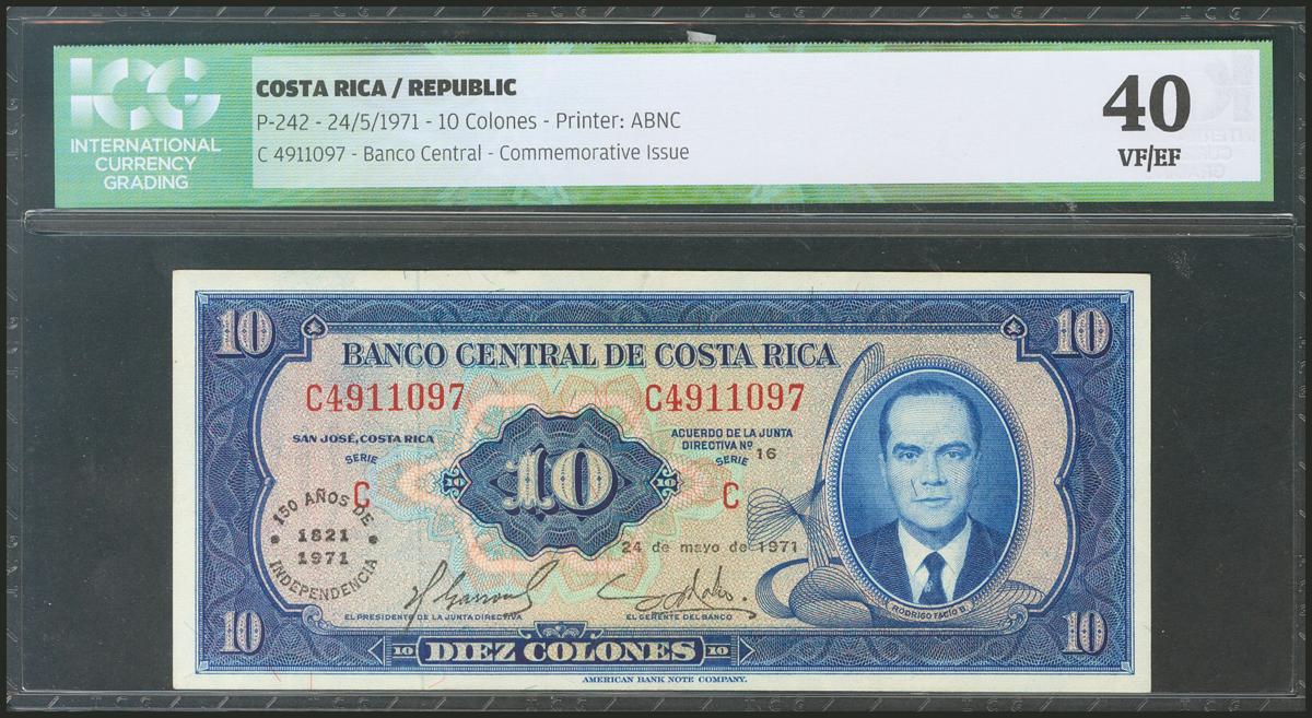 COSTA RICA. 10 Colones. 24 May 1974. Commemorative issued. (Pick: 242). ICG40.