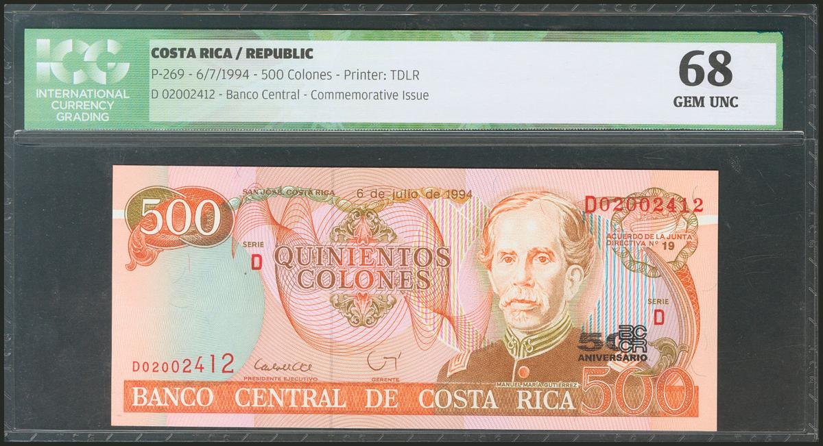 COSTA RICA. 500 Colones. 20 March 1985. Commemorative issue. (Pick: 249b). ICG68.