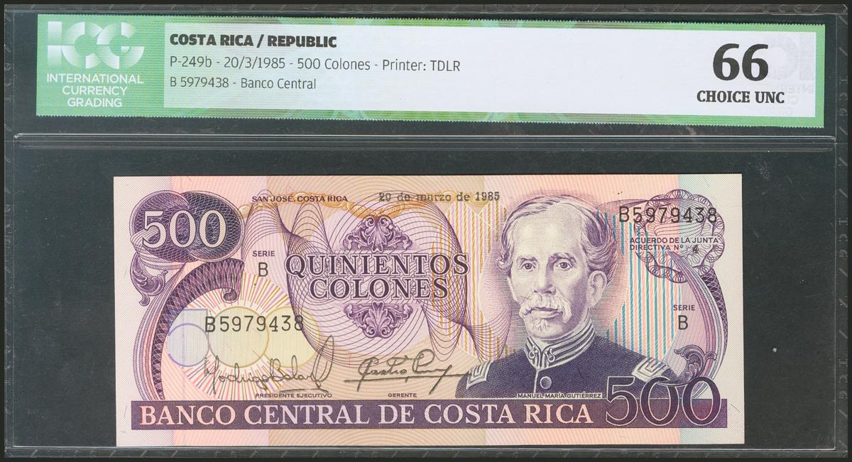 COSTA RICA. 500 Colones. 20 March 1985. (Pick: 249b). ICG66.