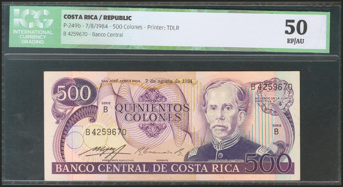 COSTA RICA. 500 Colones. 7 August 1984. (Pick: 249b). ICG50.
