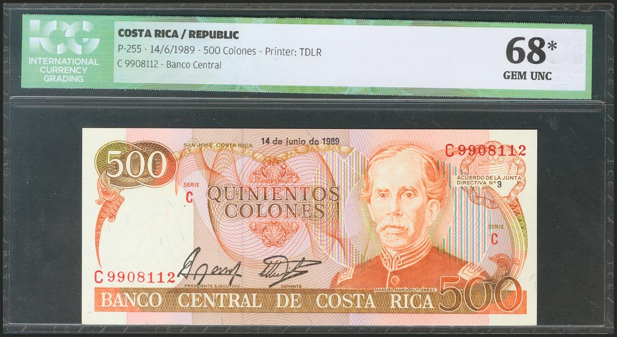 COSTA RICA. 500 Colones. 14 June 1989. (Pick: 255). ICG68* (minor spot on back).