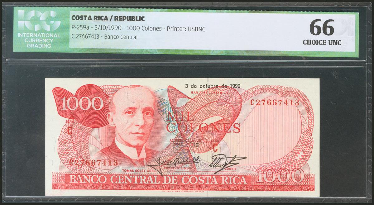 COSTA RICA. 1000 Colones. 3 October 1990. (Pick: 259a). ICG66.