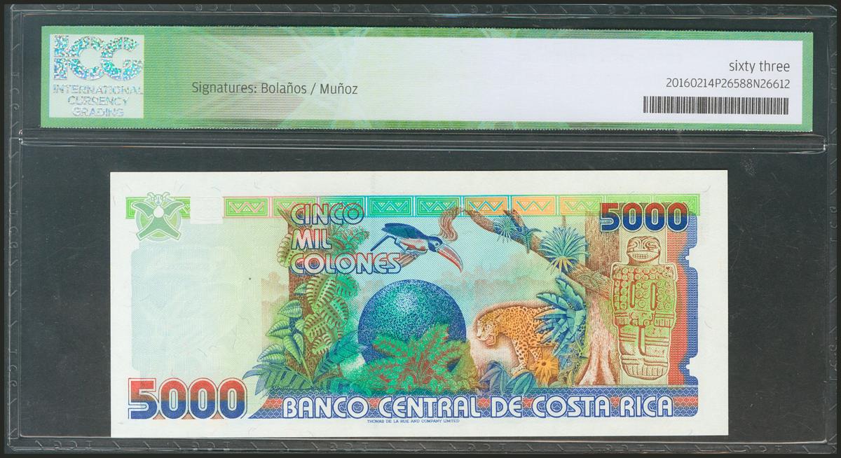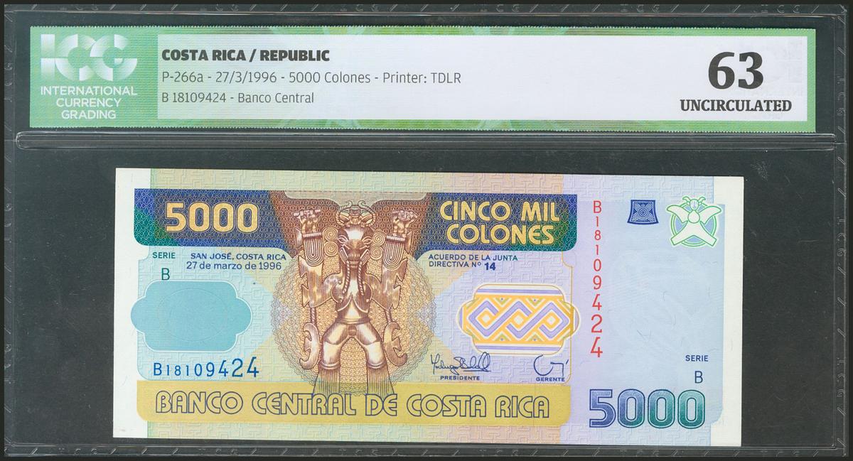 COSTA RICA. 5000 Colones. 27 March 1996. (Pick: 266a). ICG63.