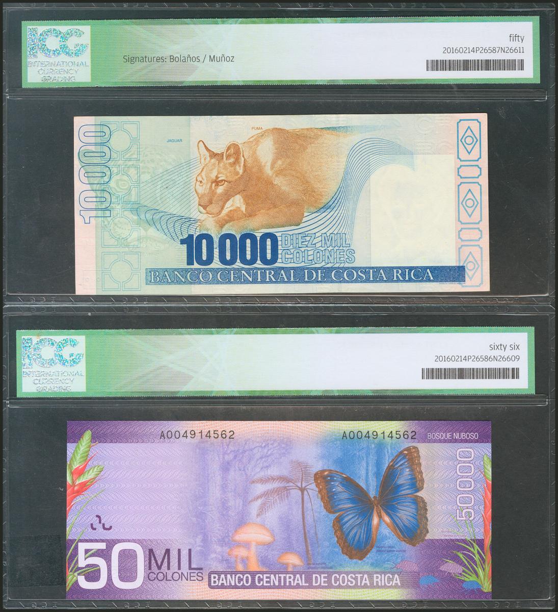 COSTA RICA. Set of 2 banknotes of 10000 and 50000 Colones. (1997/2009). (Pick: 267a/279). ICG50/66.