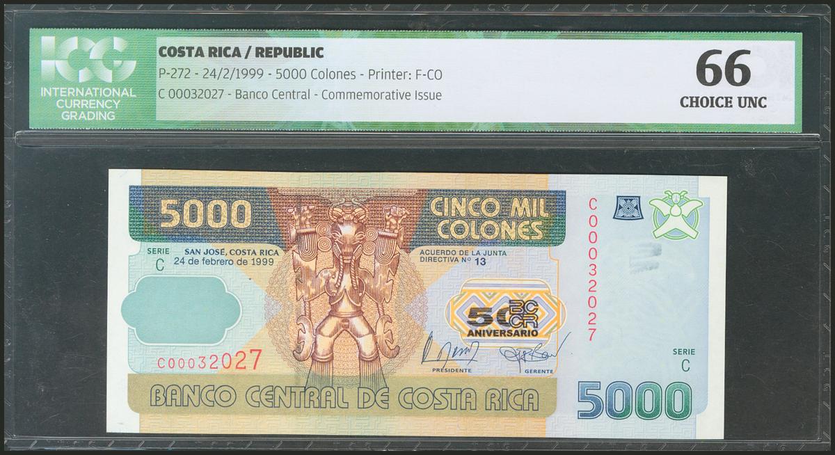 COSTA RICA. 5000 Colones. 24 February 1999. Commemorative issue. (Pick: 272). ICG66.