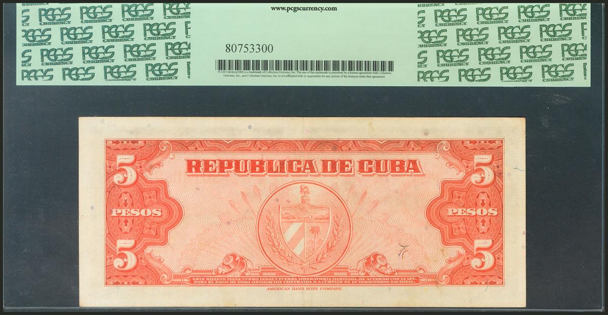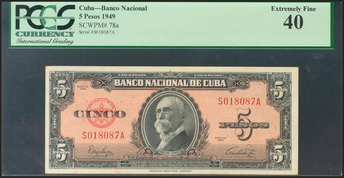 CUBA. 5 Pesos. 1949. (Pick: 78a). PCGS40.