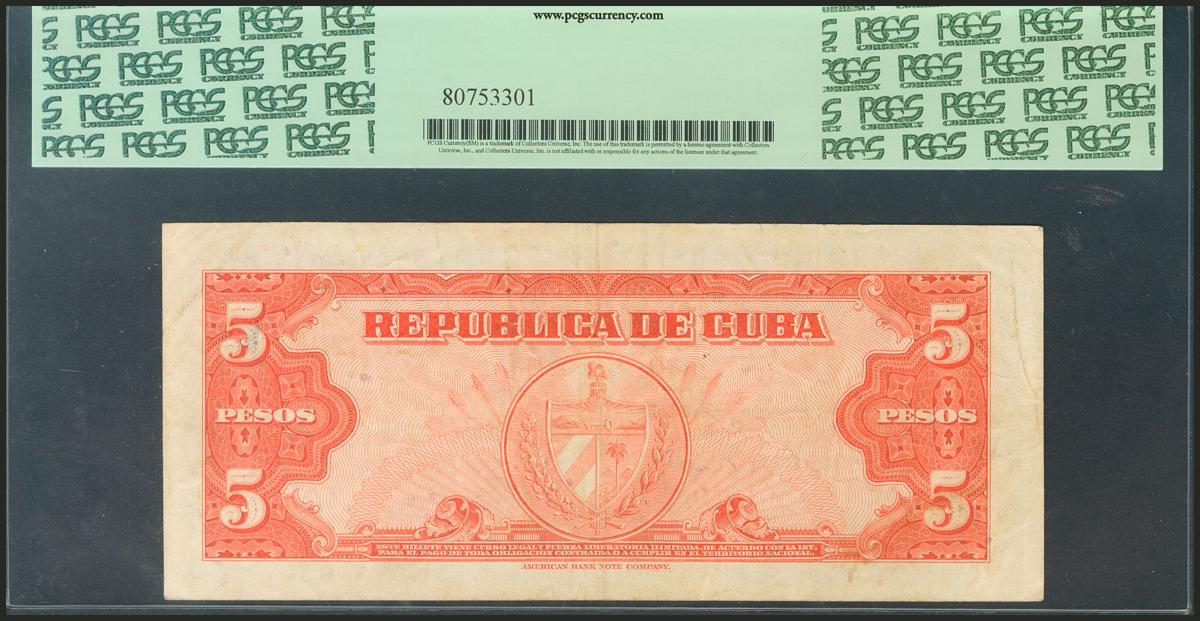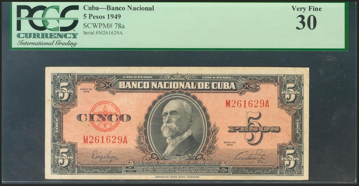 CUBA. 5 Pesos. 1949. (Pick: 78a). PCGS30.