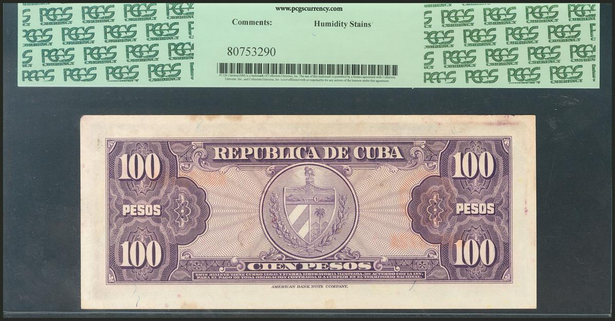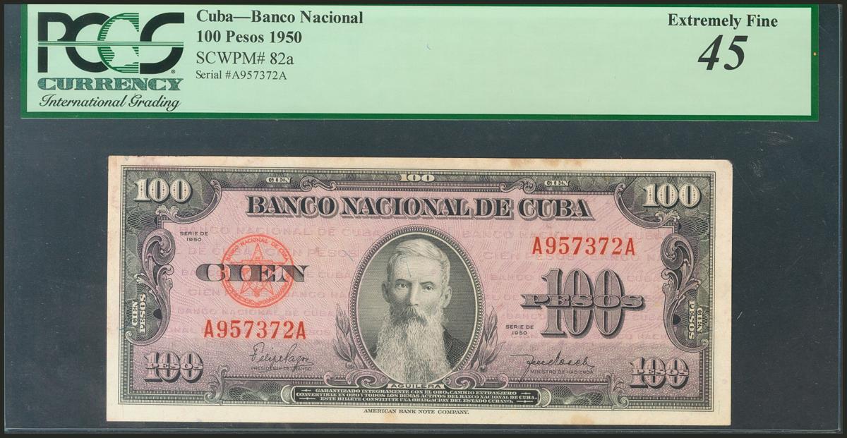 CUBA. 100 Pesos. 1950. (Pick: 82a). PCGS45.