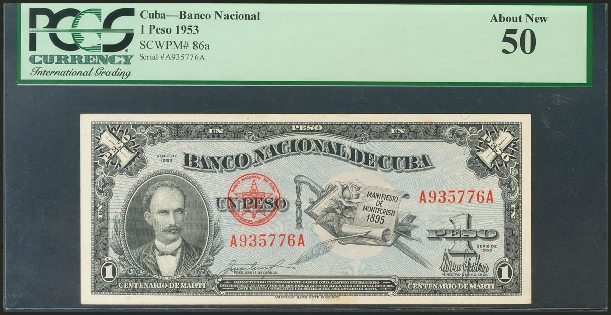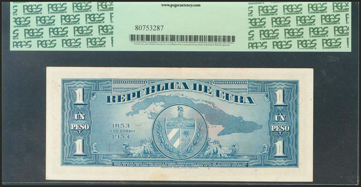 CUBA. 1 Peso. 1953. (Pick: 86a). PCGS50.