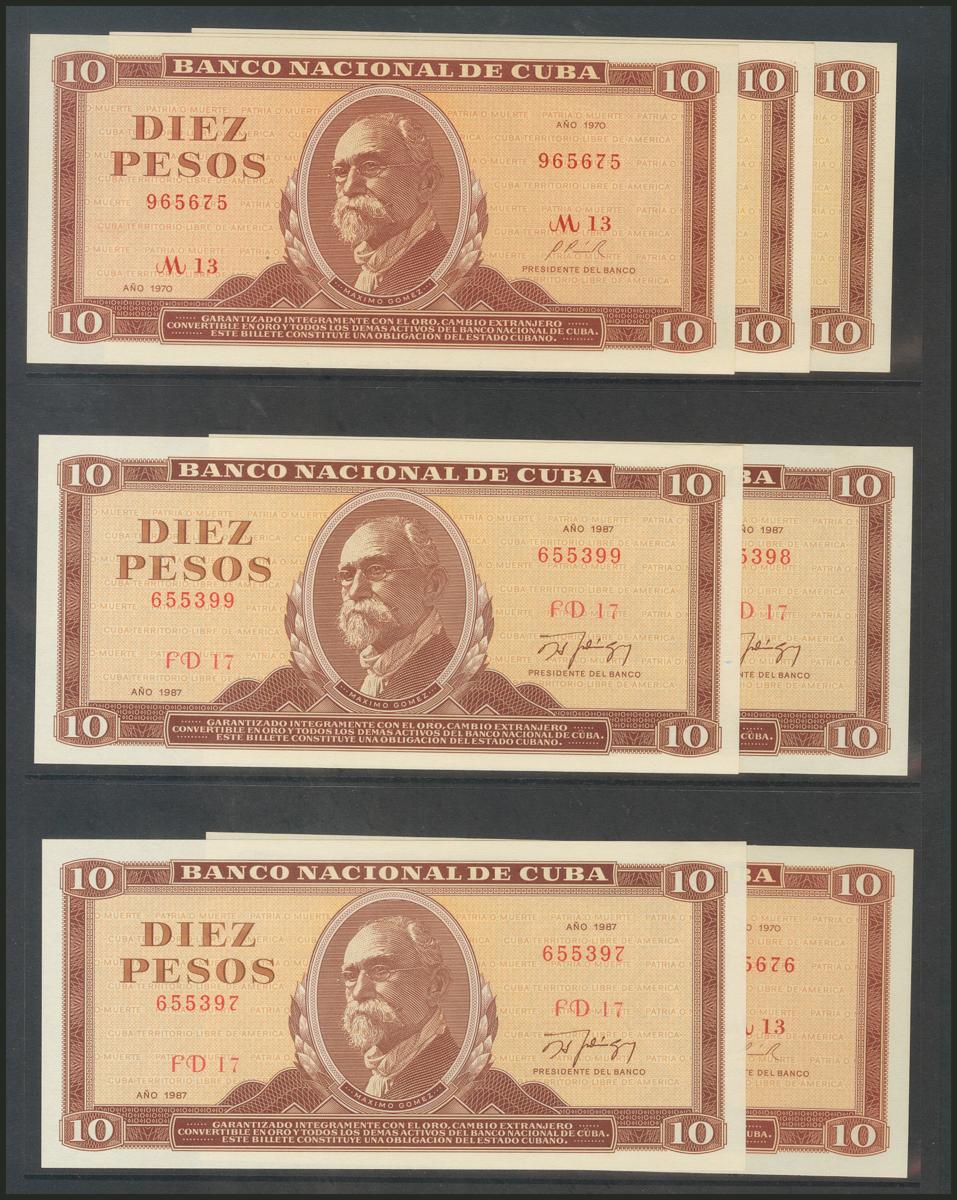CUBA. Set of 7 banknotes of 10 Pesos. 1970. Someones of them correlatives. (Pick: 104a). Uncirculated.