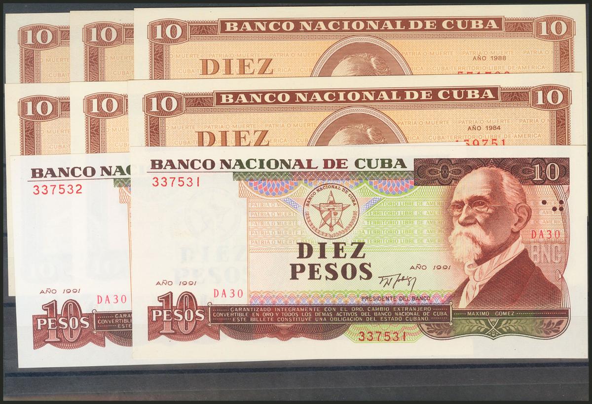 CUBA. Set of 8 banknotes of 10 Pesos. 1967/1984/1988/1991. Four Correlative pairs. (Pick: 104a/c/d, 109). Uncirculated.