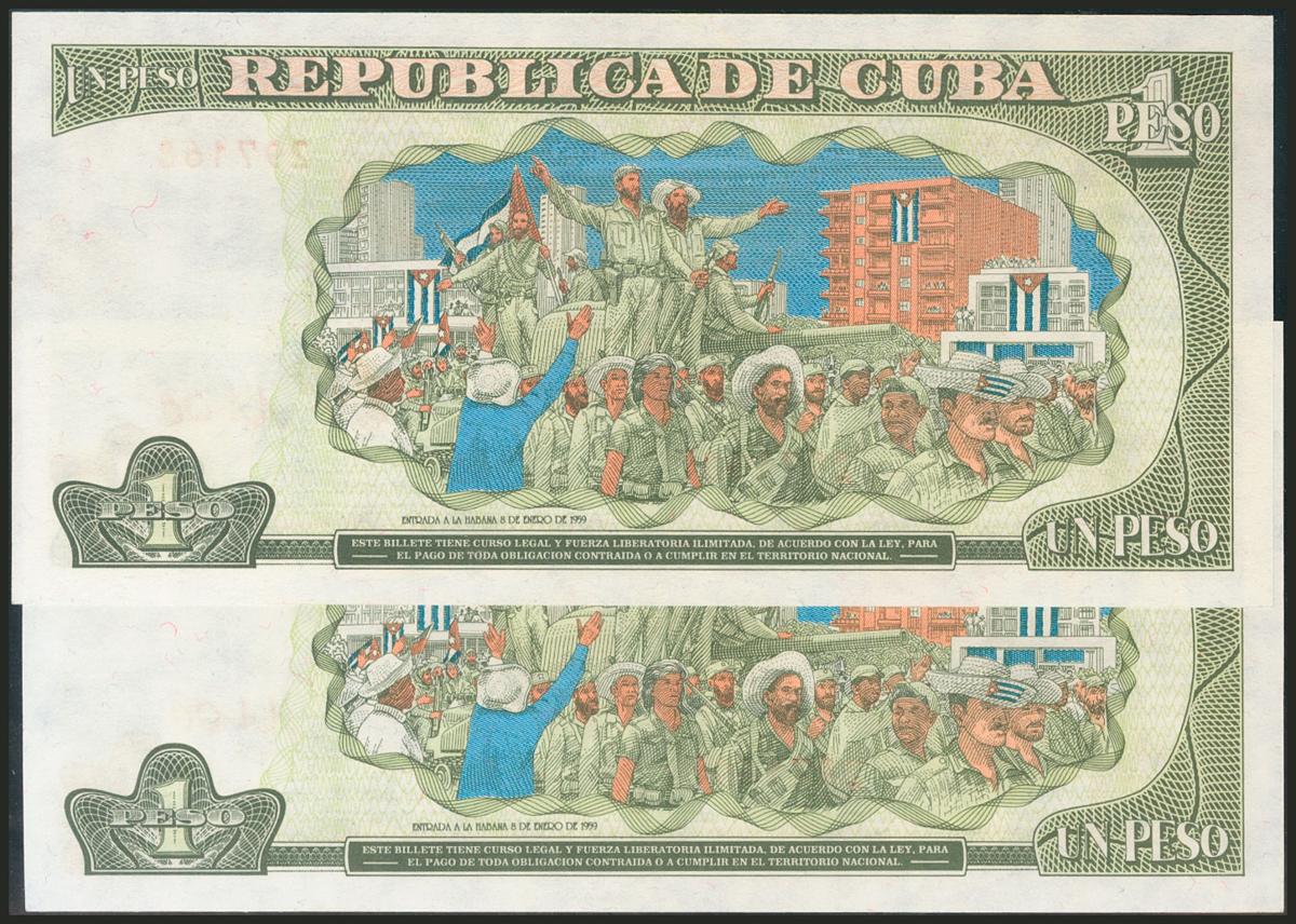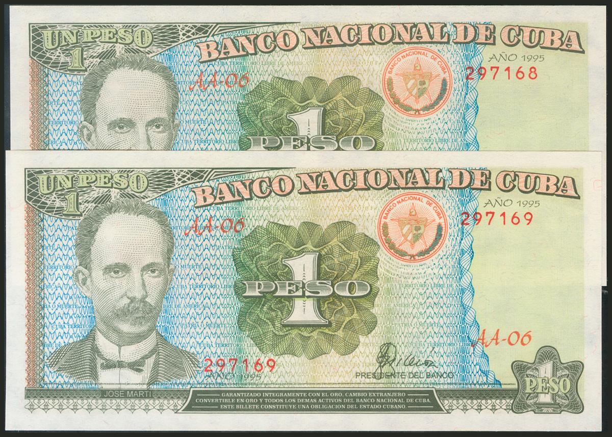 CUBA. Set of 2 banknotes of 1 Peso. 1995. Correlative pair. (Pick: 112). Uncirculated.