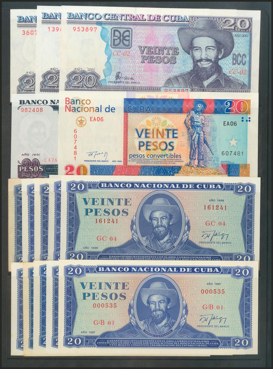 CUBA. Set of 15 banknotes of 20 Pesos, included 20 Pesos Convertibles. 1961-2001. Mostly Uncirculated.