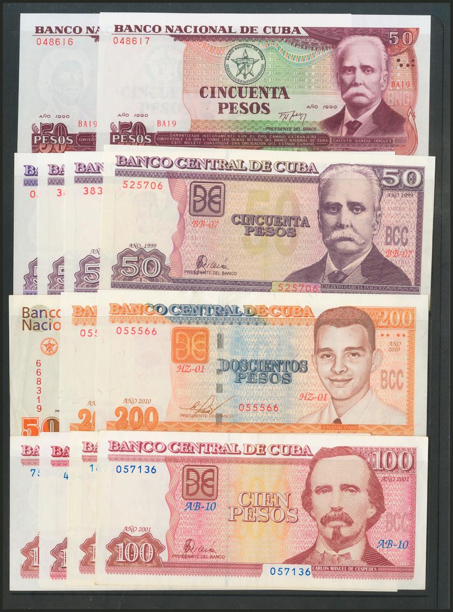 CUBA. Set of 13 banknotes of 50, 100 and 200 Pesos, included 50 Pesos Convertibles and one pair correlative. 1990-2004. Mostly Uncirculated.