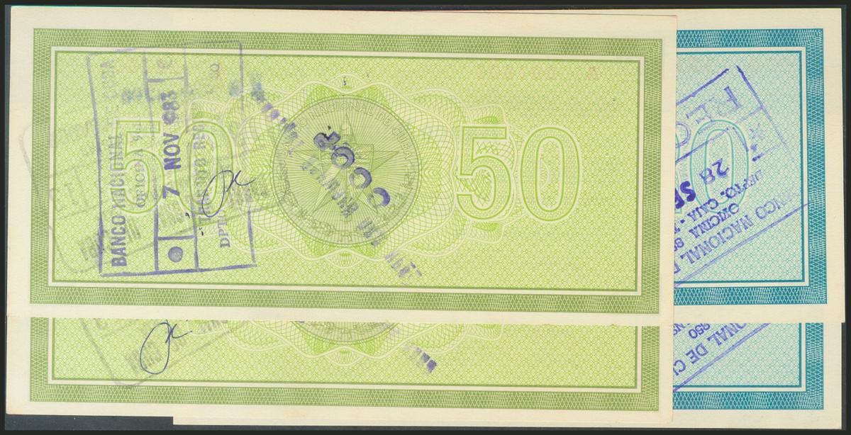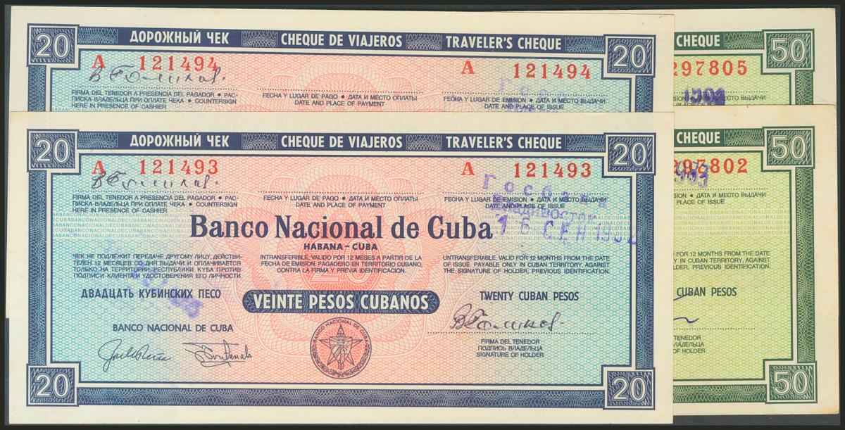 CUBA. Banco Nacional de Cuba. Set of 4 Cheques of Viajeros (20 and 50 Pesos). 1982-1983. About uncirculated.
