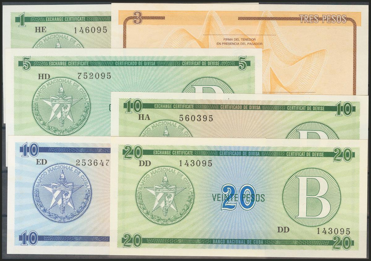 CUBA. Set of 6 Certificados de Compra & Divisa. S/D. 1, 3, 5, 10 and 20 Pesos. Uncirculated.