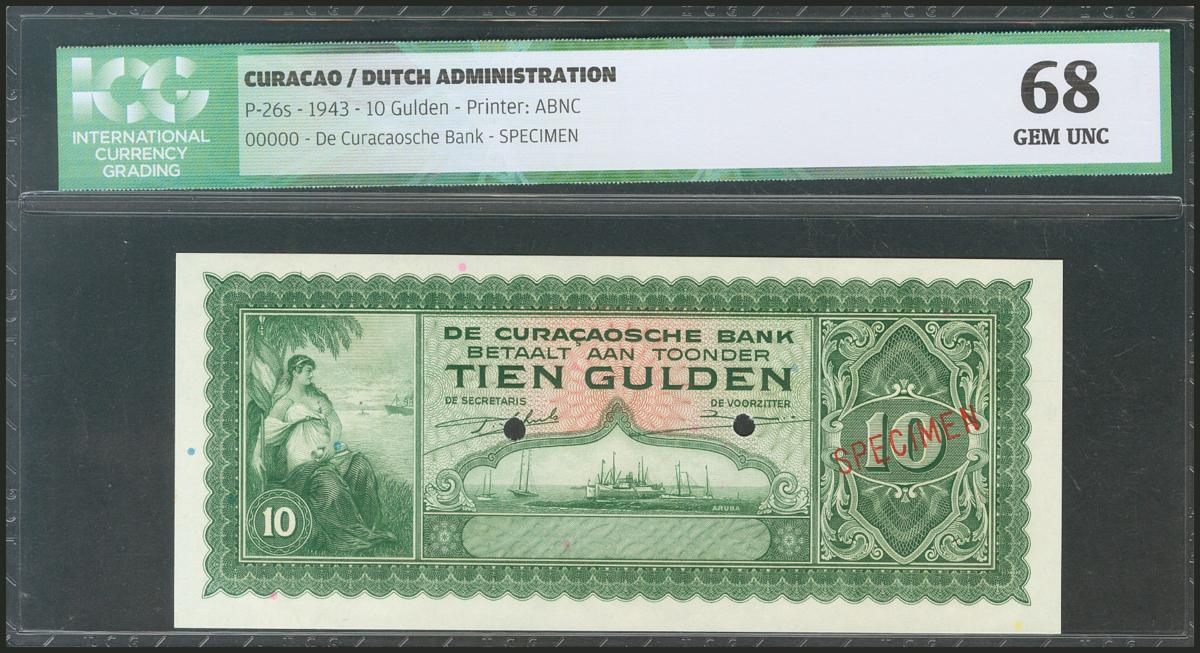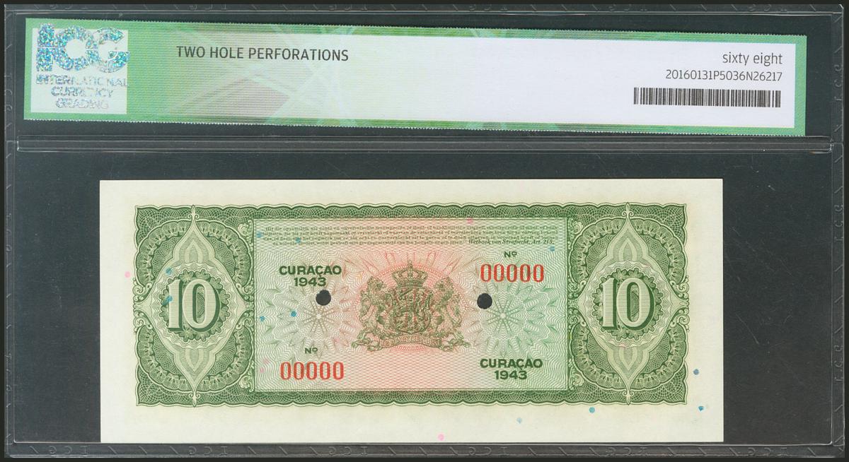 CURAÇAO. 10 Gulden. 1943. Specimen. (Pick: 26s). ICG68.