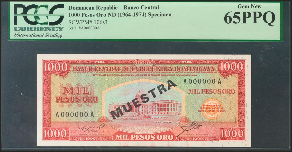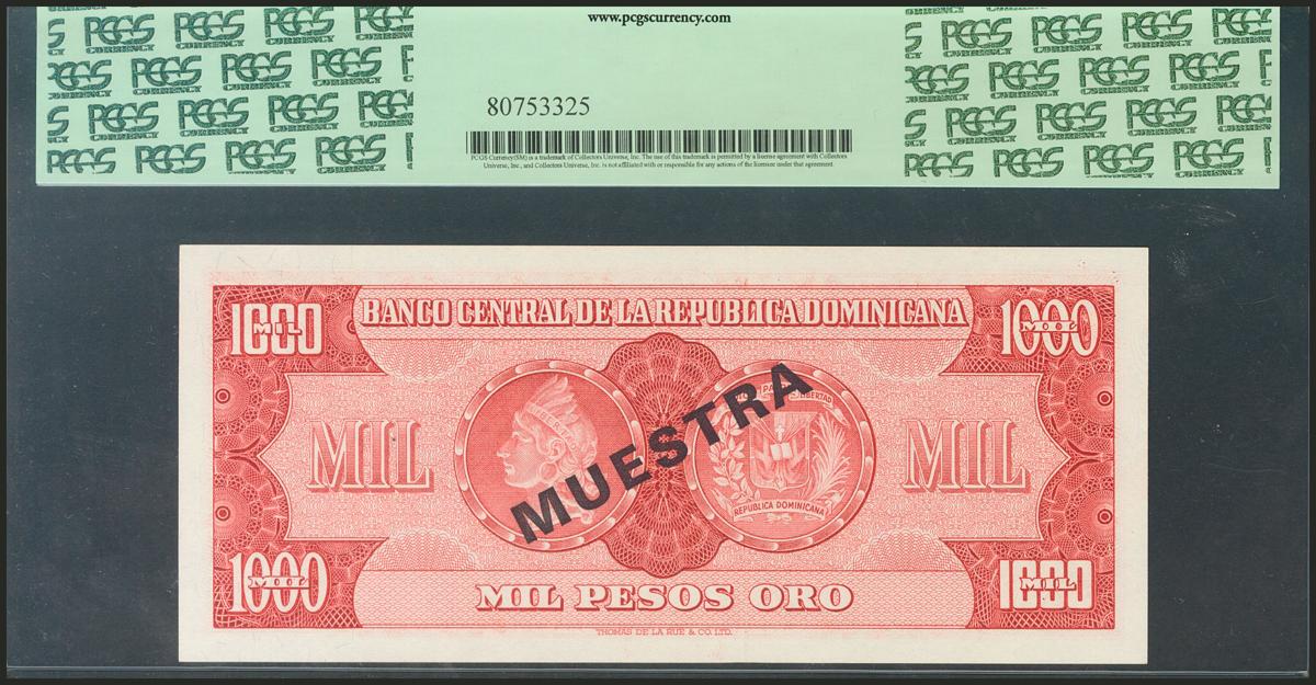 DOMINICAN REPUBLIC. 1000 Pesos Oro. 1964-1974. Specimen A000000A. (Pick: s106s3). PCGS65PPQ.