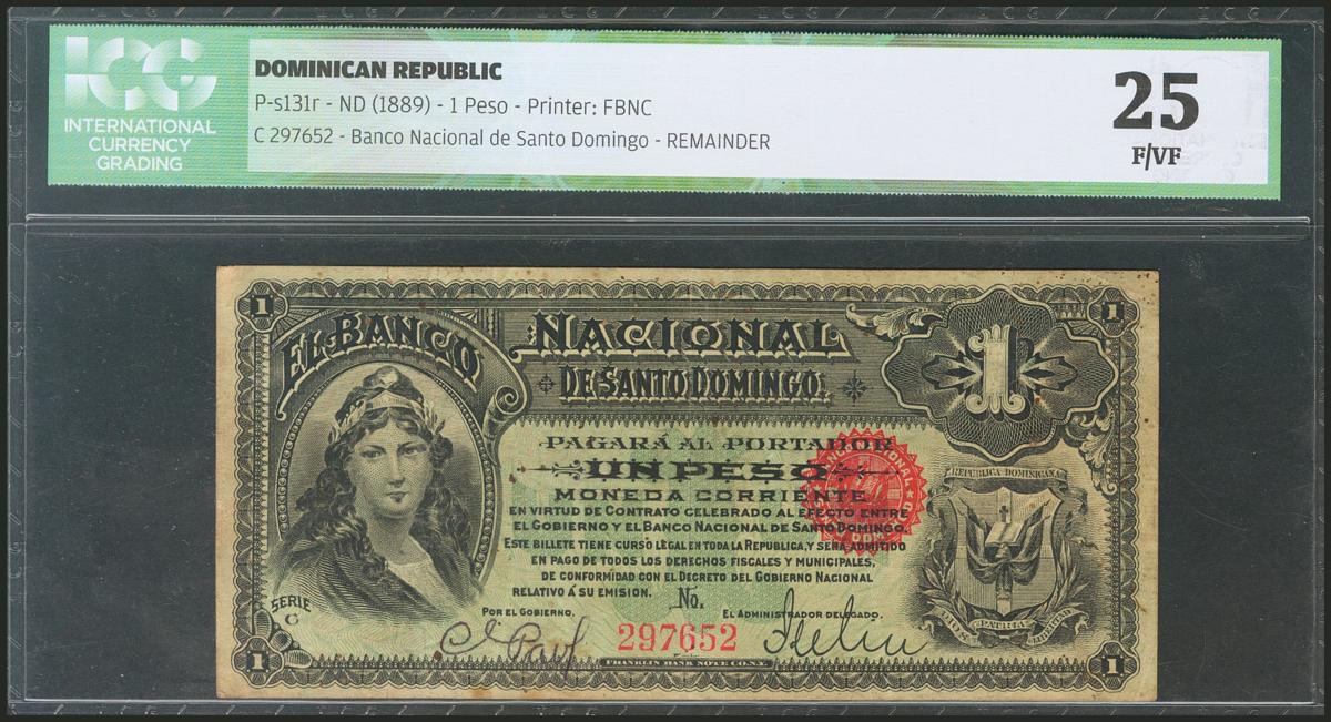 DOMINICAN REPUBLIC. 1 Peso. 1889. (Pick: s131r). ICG25.
