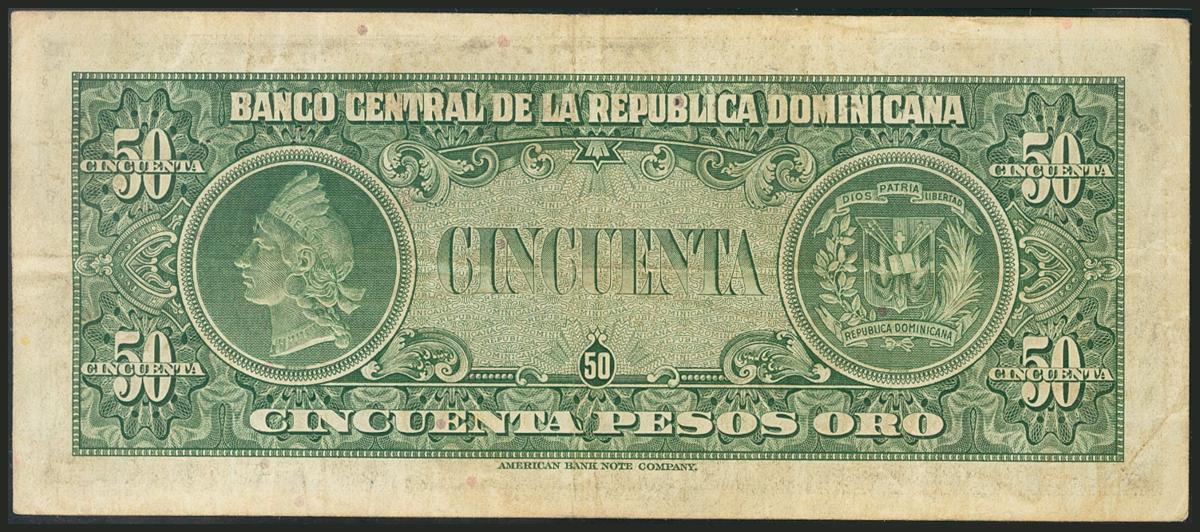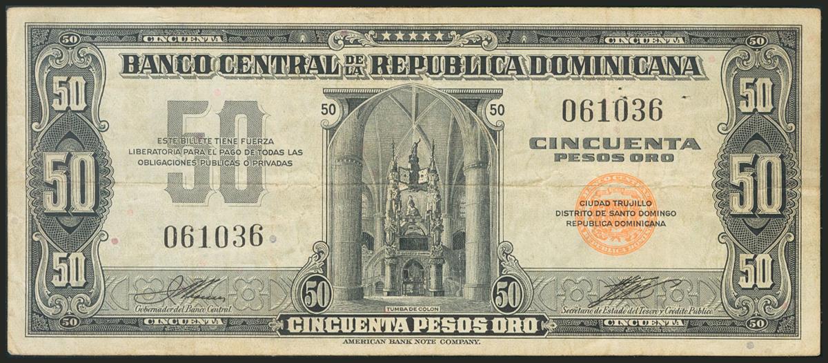DOMINICAN REPUBLIC. Ciudad Trujillo. 50 Pesos Oro. 1947-1951. (Pick: 64). Fine.