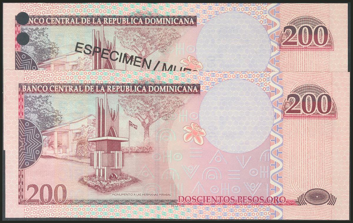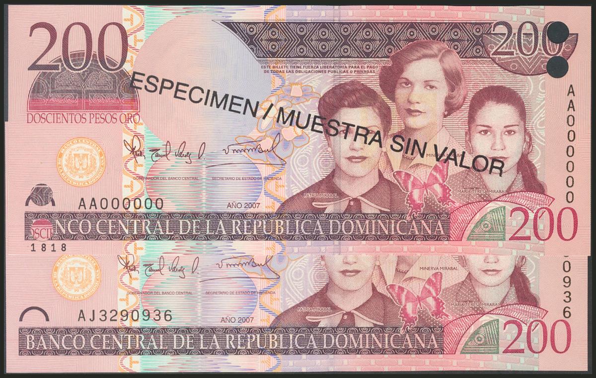 DOMINICAN REPUBLIC. Set of 2 banknotes of 200 Pesos Oro, one of the Specimen. 2007 (Pick: 178). Uncirculated.