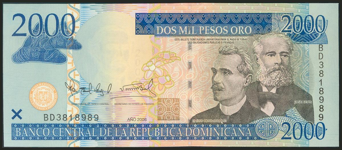 DOMINICAN REPUBLIC. 2000 Pesos Oro. 2006. (Pick: 181a). Uncirculated.