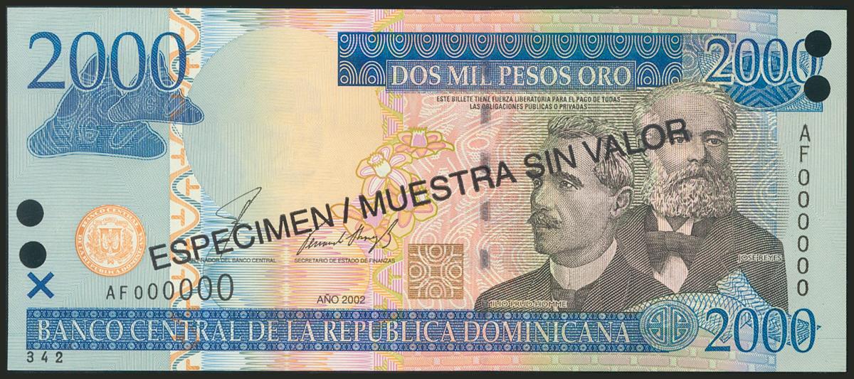 DOMINICAN REPUBLIC. 2000 Pesos Oro. 2006. Specimen. (Pick: 181s). Uncirculated.