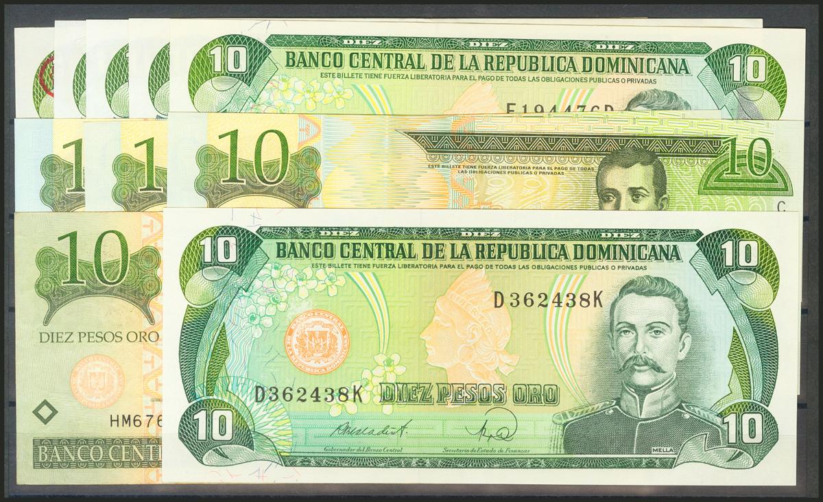 DOMINICAN REPUBLIC. Set of 10 banknotes of 10 Pesos Oro. Different dates. Included Specimen. Fine/Uncirculated.