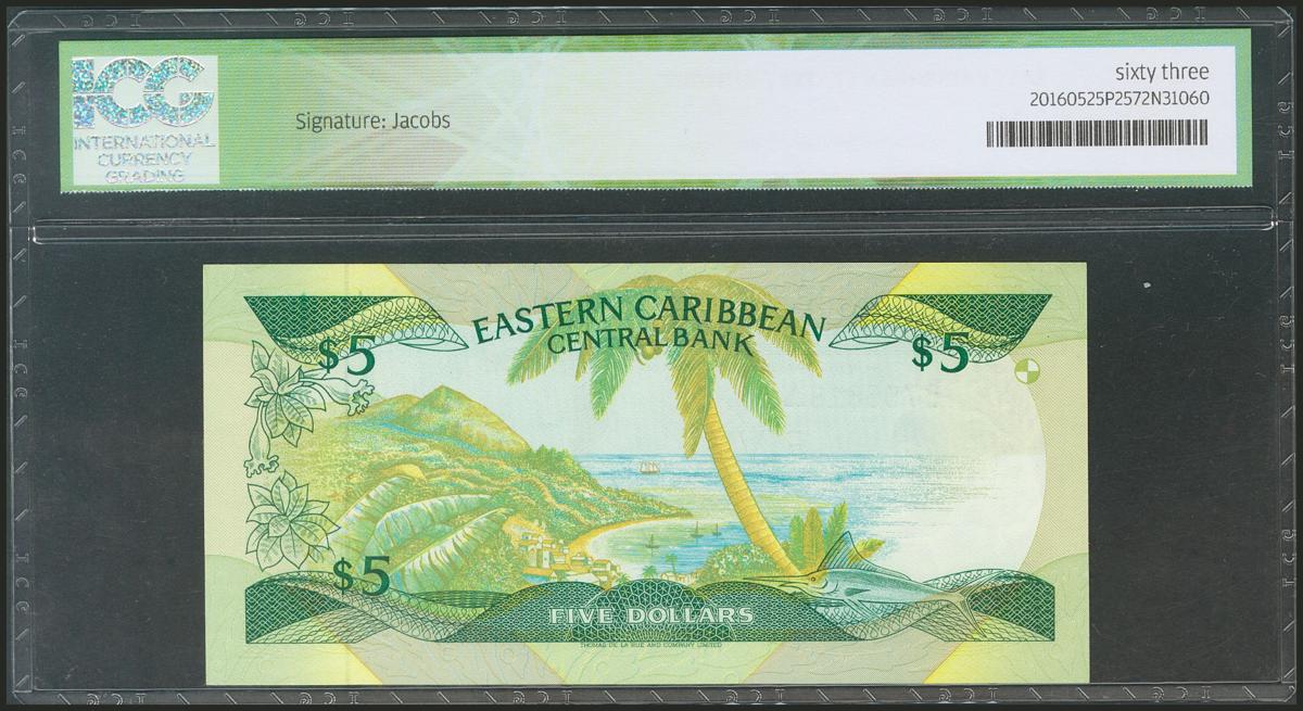 EAST CARIBBEAN STATES. 5 Dollars. 1988. Antigua. (Pick: 22a1). ICG63.