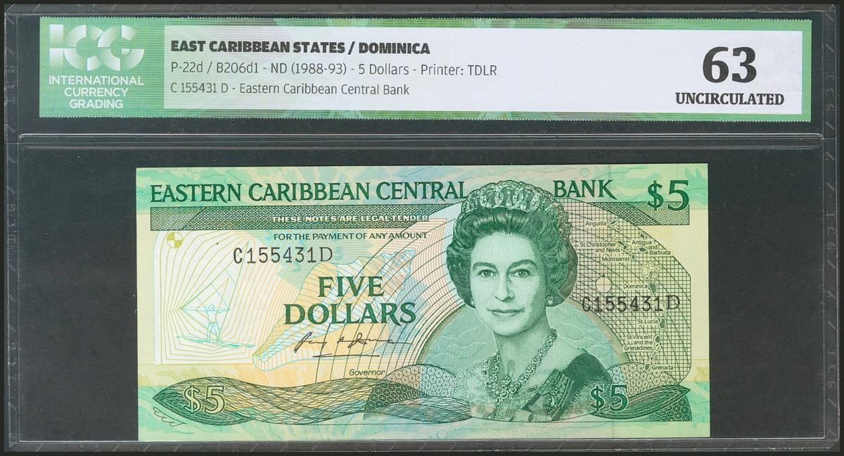 EAST CARIBBEAN STATES. 5 Dollars. 1988. Dominica. (Pick: 22d). ICG63.