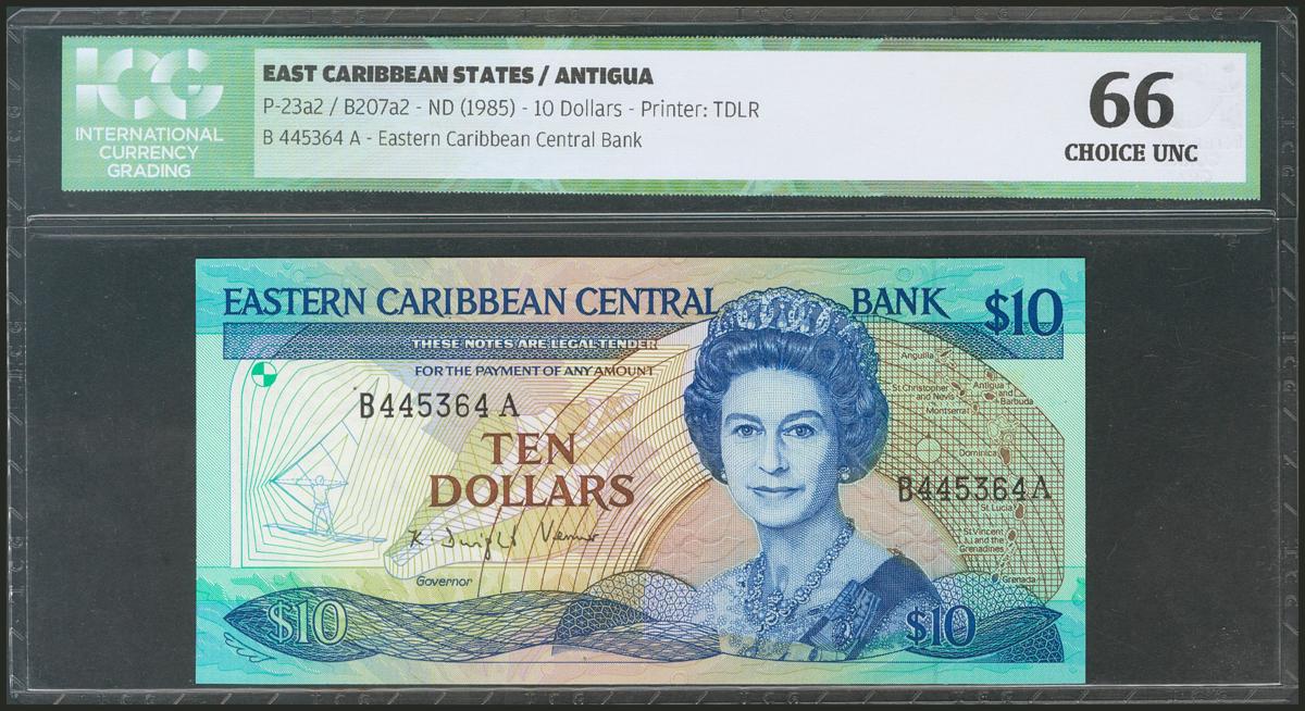 EAST CARIBBEAN STATES. 10 Dollars. 1985. Antigua. (Pick: 23a2). ICG66.