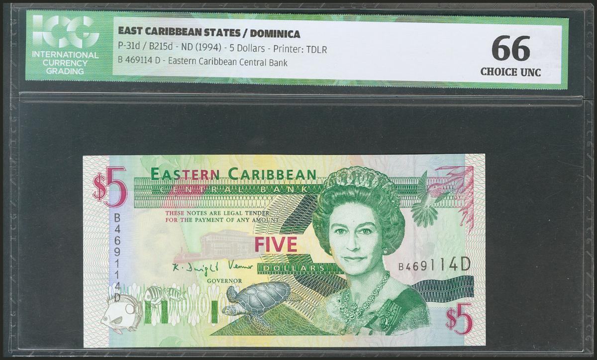 EAST CARIBBEAN STATES. 5 Dollars. 1994. Dominica. (Pick: 31d). ICG66.