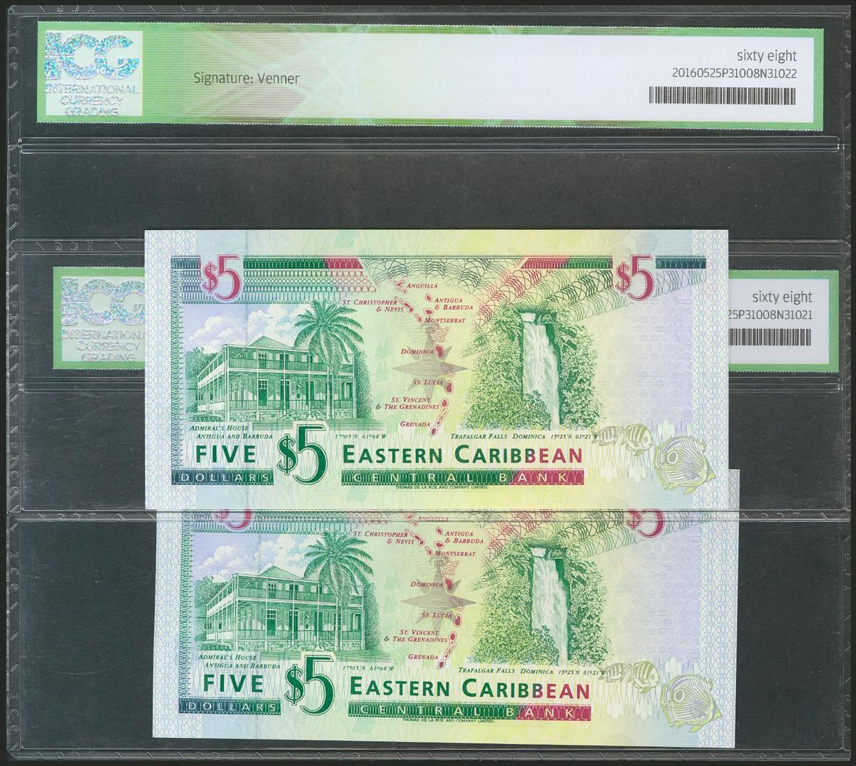 EAST CARIBBEAN STATES. 5 Dollars. 1994. Saint Kitts. Consecutive pair. (Pick: 31k). ICG68.