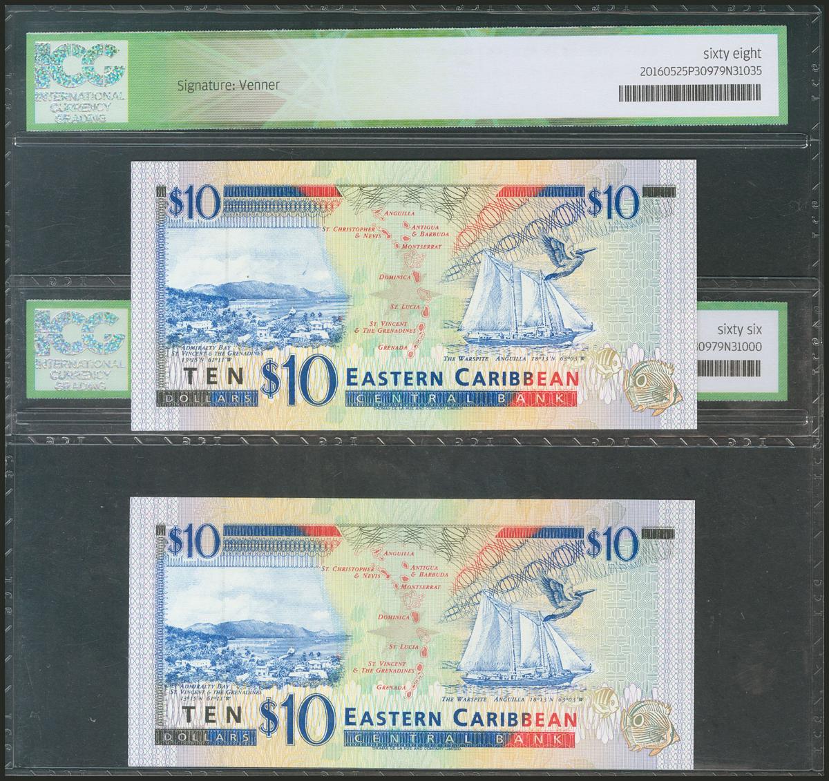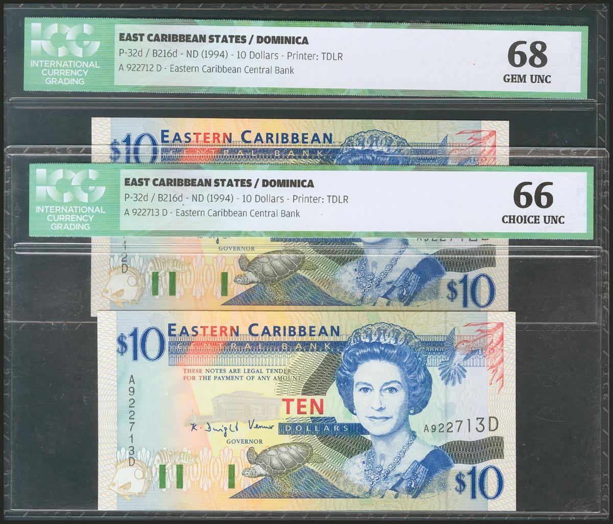 EAST CARIBBEAN STATES. 10 Dollars. 1994. Dominica. Consecutive pair. (Pick: 32d). ICG66/68.