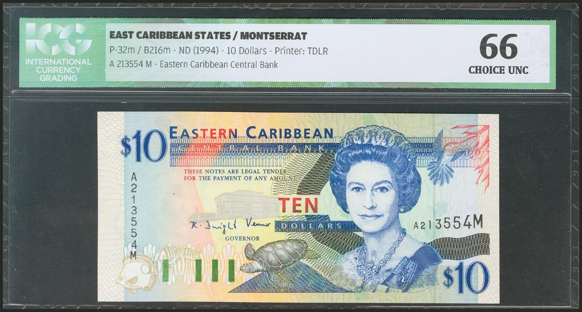 EAST CARIBBEAN STATES. 10 Dollars. 1994. Montserrat. (Pick: 32m). ICG66.