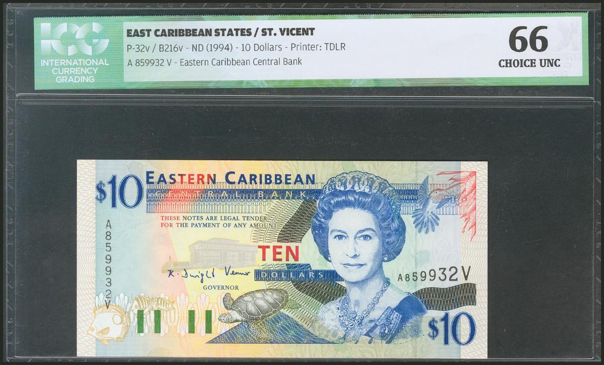 EAST CARIBBEAN STATES. 10 Dollars. 1994. Saint Vincent.(Pick: 32v). ICG66.