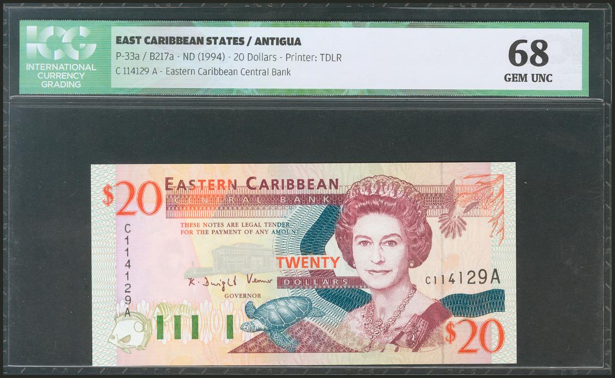 EAST CARIBBEAN STATES. 20 Dollars. 1994. Antigua. (Pick: 33a). ICG68.