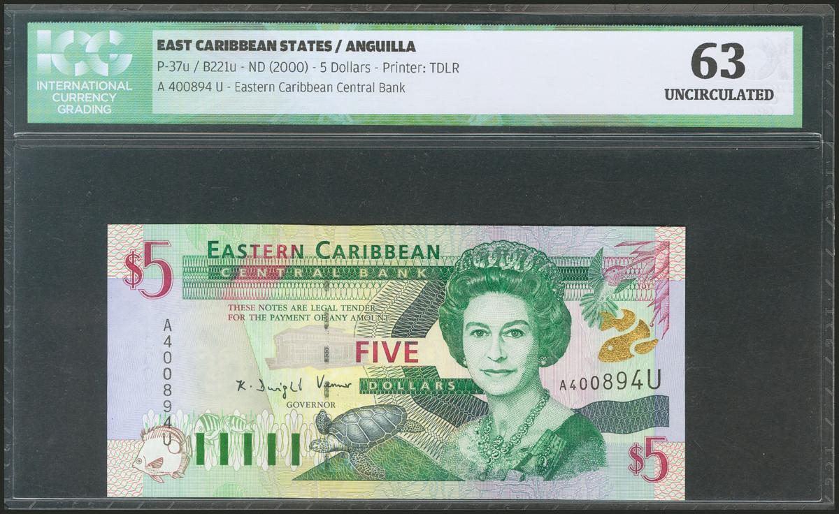 EAST CARIBBEAN STATES. 5 Dollars. 2000. Anguilla. (Pick: 37u). ICG63.