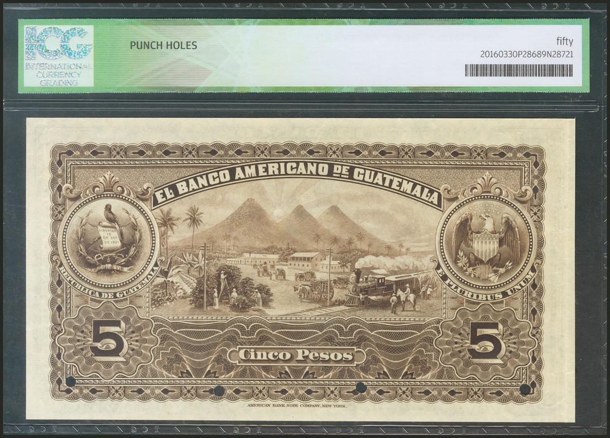 GUATEMALA. BANCO AMERICANO. 5 Pesos. 1914. Specimen B000000. (Pick: s112s). ICG50.