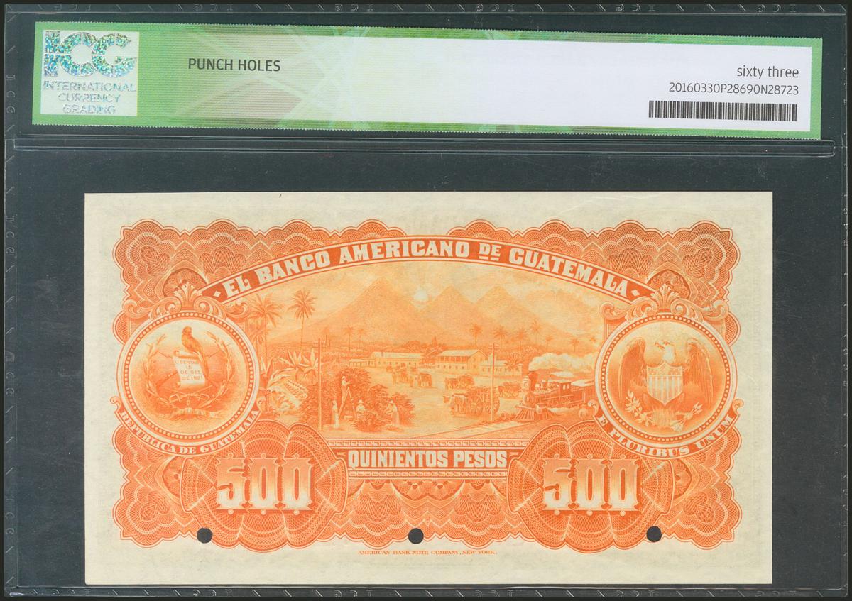 GUATEMALA. BANCO AMERICANO. 500 Pesos. 1917. Specimen E000000. (Pick: s115s). ICG63.