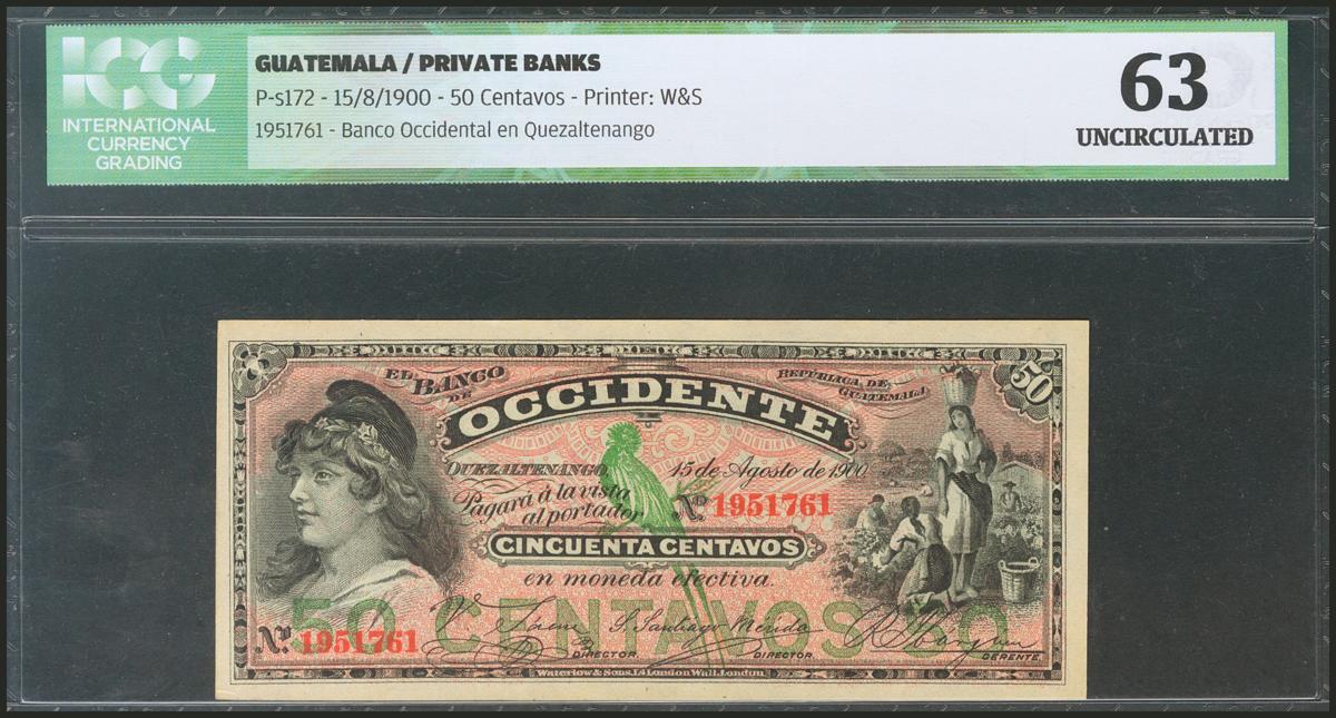 GUATEMALA. PRIVATE BANKS. 50 Centavos. 15 August 1900. (Pick: s172). ICG63.