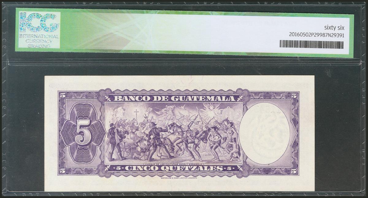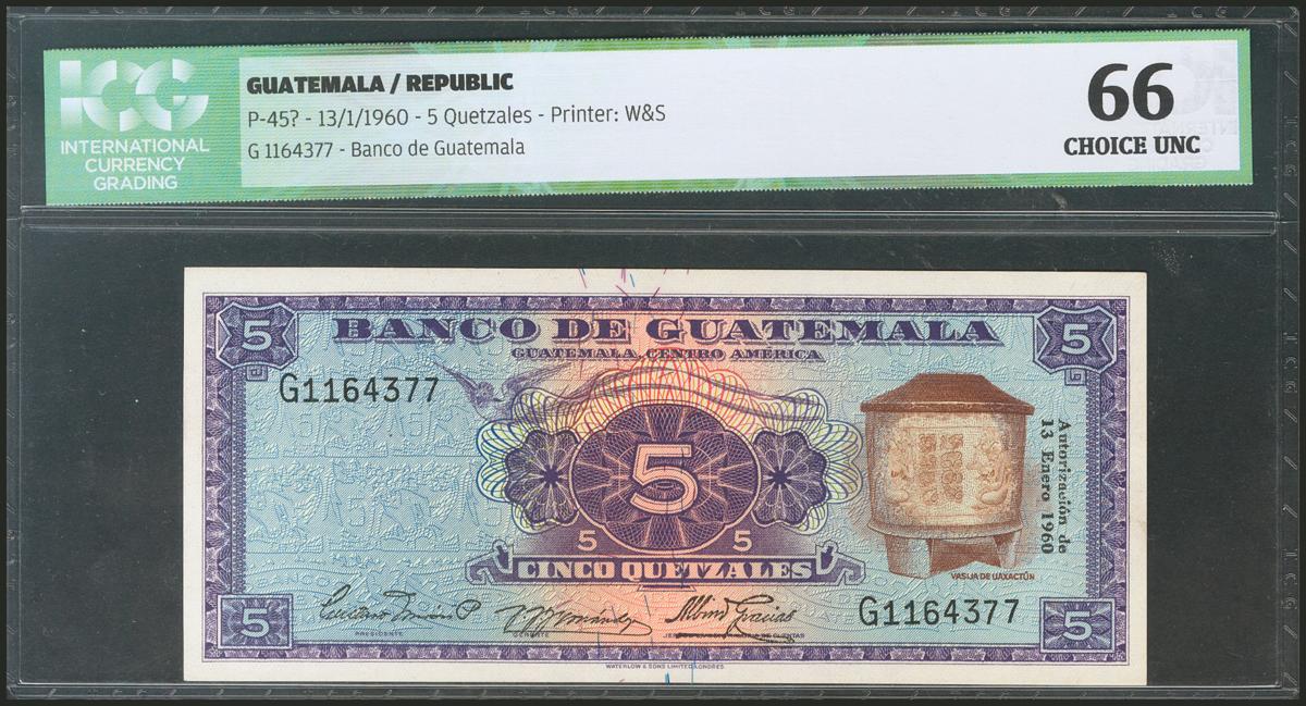 GUATEMALA. 5 Quetzales. 13 January 1960. (Pick: 45). ICG66.