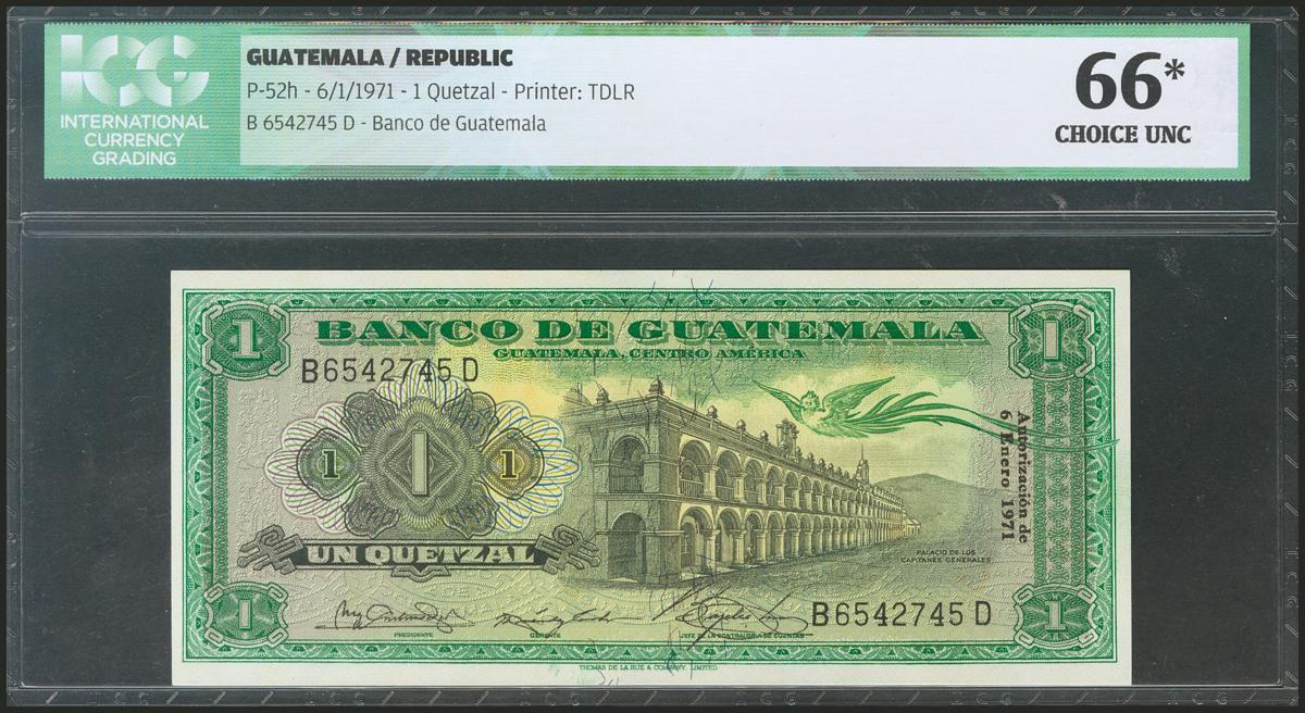 GUATEMALA. 1 Quetzal. 6 January 1971. (Pick: 52h). ICG66* (light foxing).