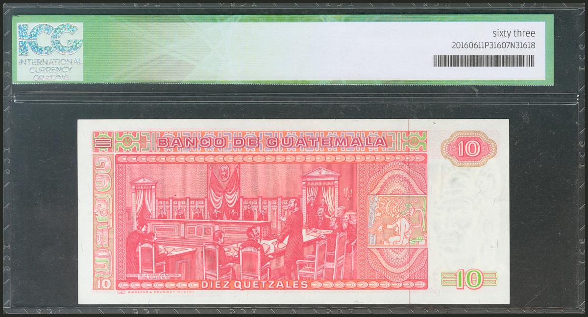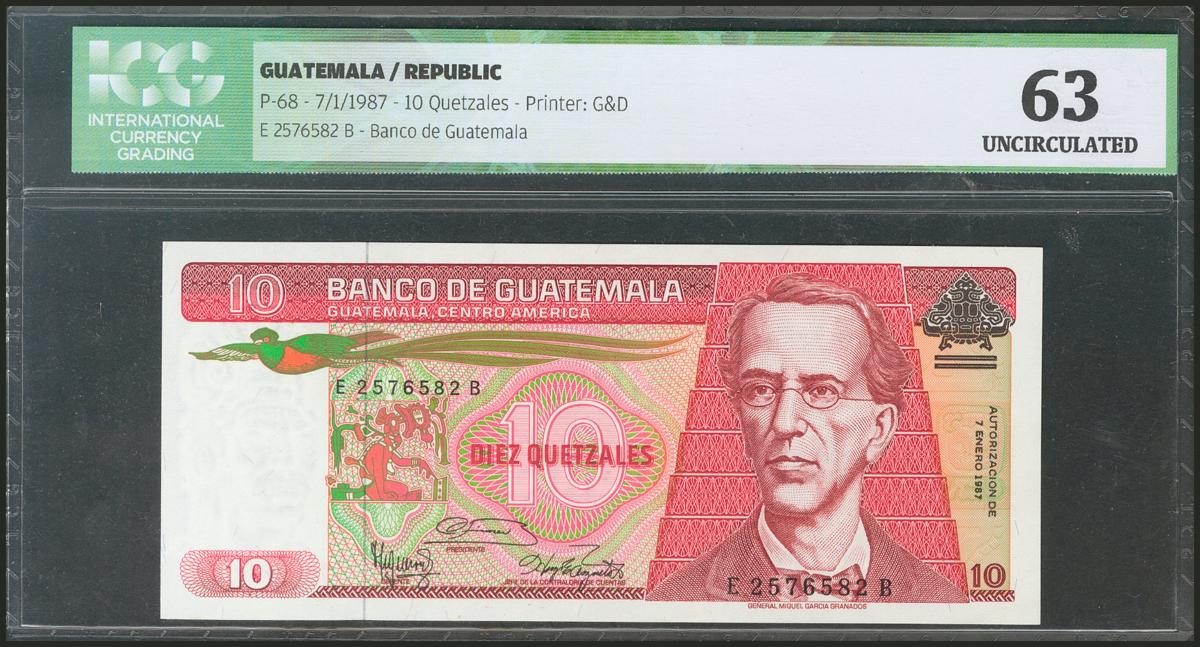 GUATEMALA. 10 Quetzales. 7 January 1987. (Pick: 68). ICG63.