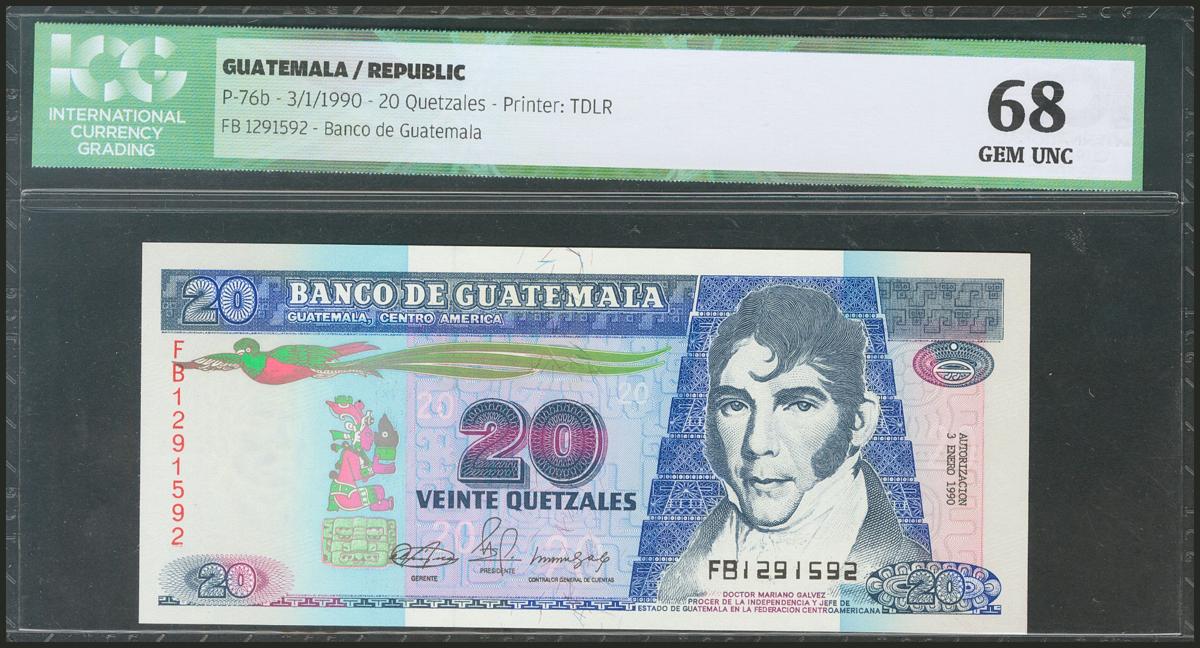 GUATEMALA. 20 Quetzales. 3 January 1990. (Pick: 76b). ICG68.