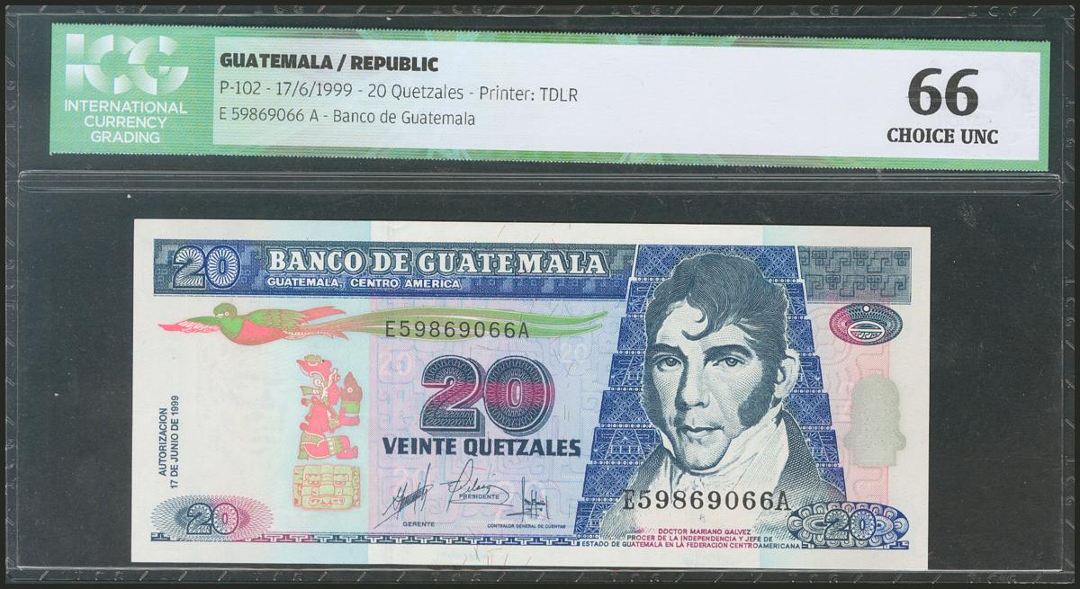 GUATEMALA. 20 Quetzales. 17 June 1999. (Pick: 102). ICG66.