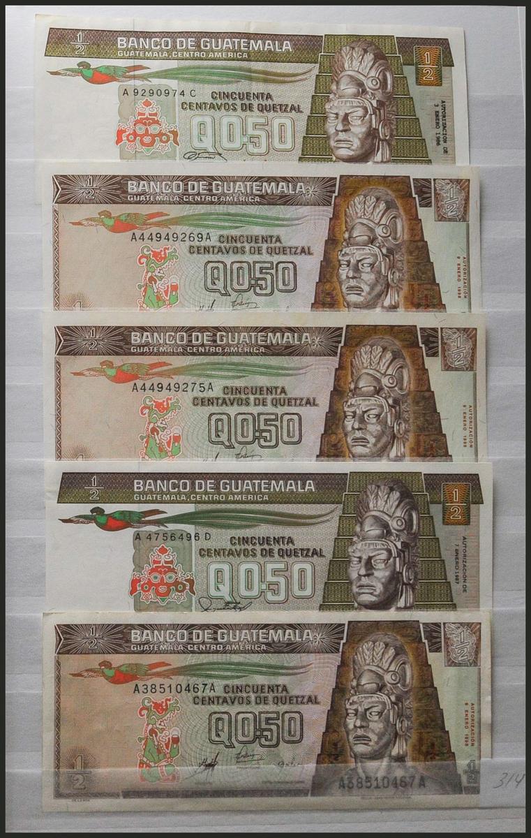 GUATEMALA. Set of 38 Banknotes of 50 centavos, 1, 5, 10, 20 and 100 Quetzales. 1978-2008. Fine/Uncirculated.