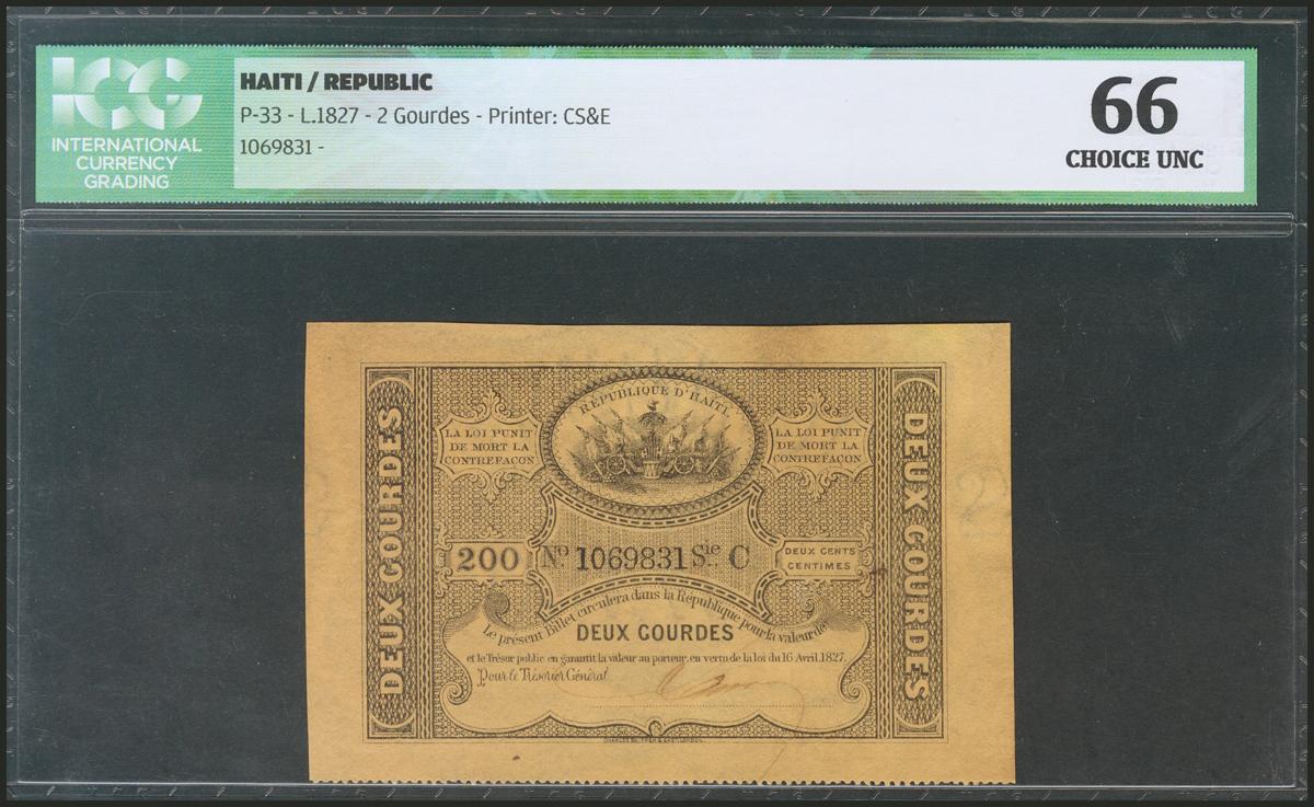 HAITI. 2 Gourdes. 1827. (Pick: 33). ICG66.